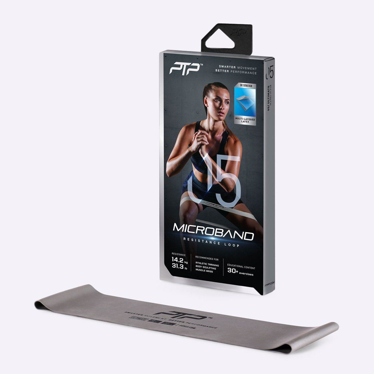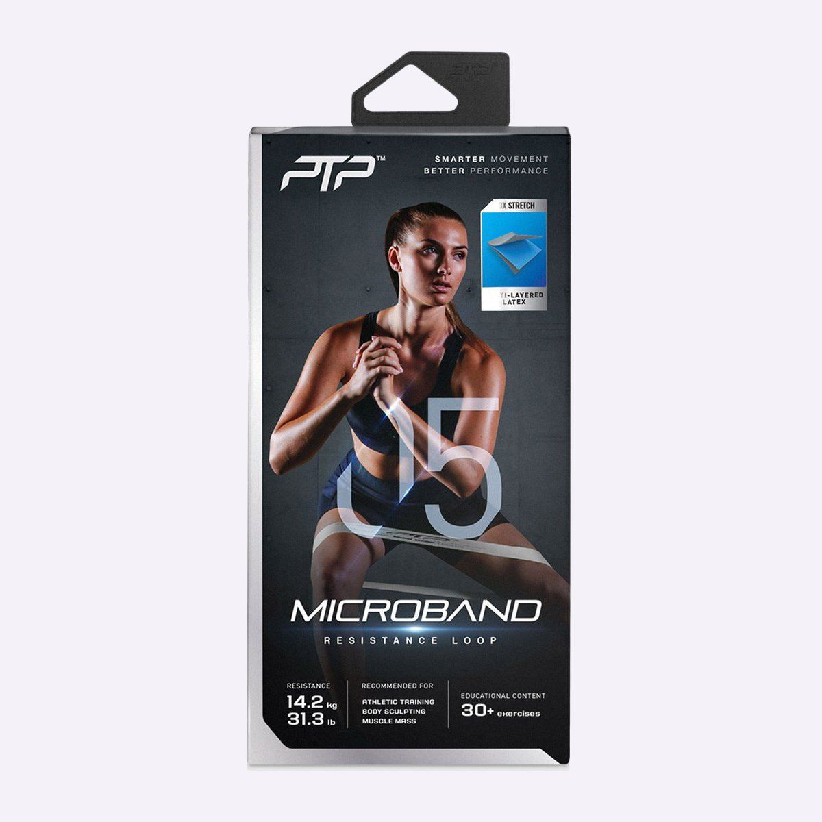 The loop design of the PTP MicroBand allows to perform exercises that benefit muscles with a small range of motion, which makes it ideal to target glutes, hips and shoulders. At 14.2 kg (31.3 lb.) worth of tension, the PTP MicroBand Ultimate has been created to challenge the strongest individuals.
